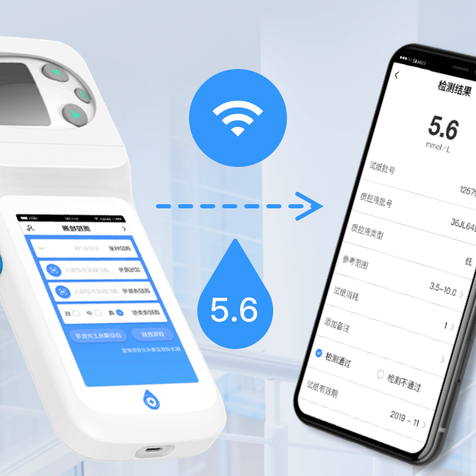 檢測(cè)結(jié)果通過(guò)藍(lán)牙、WIFI自動(dòng)傳輸至移動(dòng)端及服務(wù)器 Automatic transfer of results to mobile terminals and servers via Bluetooth or WiFi