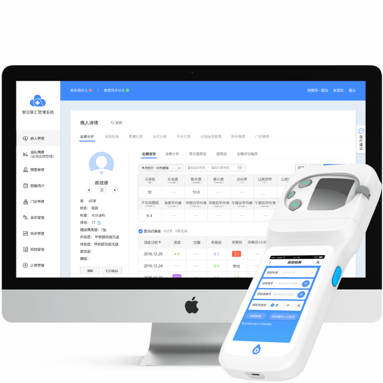 通過(guò)對(duì)數(shù)據(jù)的權(quán)限分類,院內(nèi)醫(yī)護(hù)可隨時(shí)隨地查看對(duì)應(yīng)患者的血糖數(shù)據(jù) Based different data permissions,doctors and nurses can check blood sugar data of patients in the system