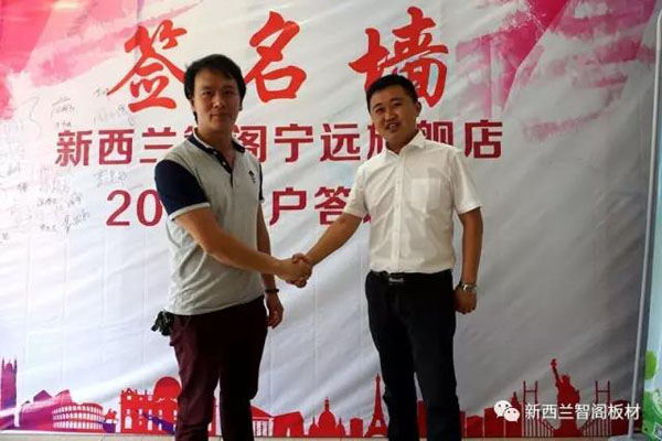 ▲新西蘭智閣寧遠(yuǎn)旗艦店張總(左)與新西蘭智閣品牌國內(nèi)營銷中心總經(jīng)理龍總(右)握手